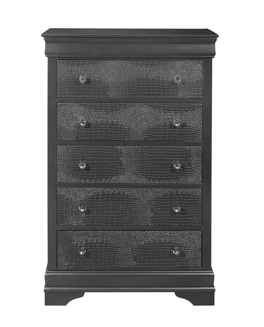 Name: Shaker Crocodile Metallic Grey CHEST Characteristics: Crystal Embellished Hardware Textured Detailed Drawer Fronts Contemporary...