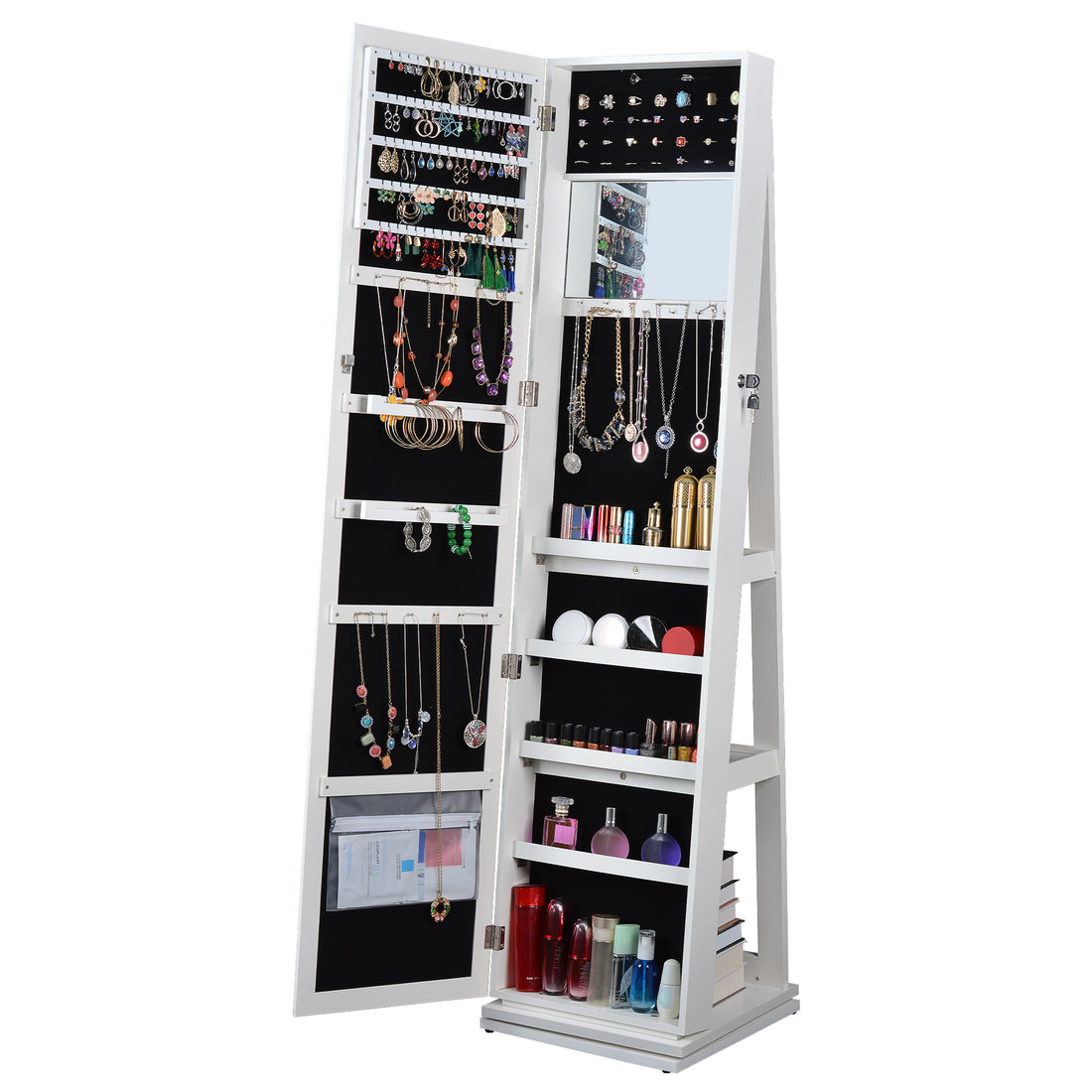 Full Length Mirror 360 Swivel Jewelry Cabinet White Mdf