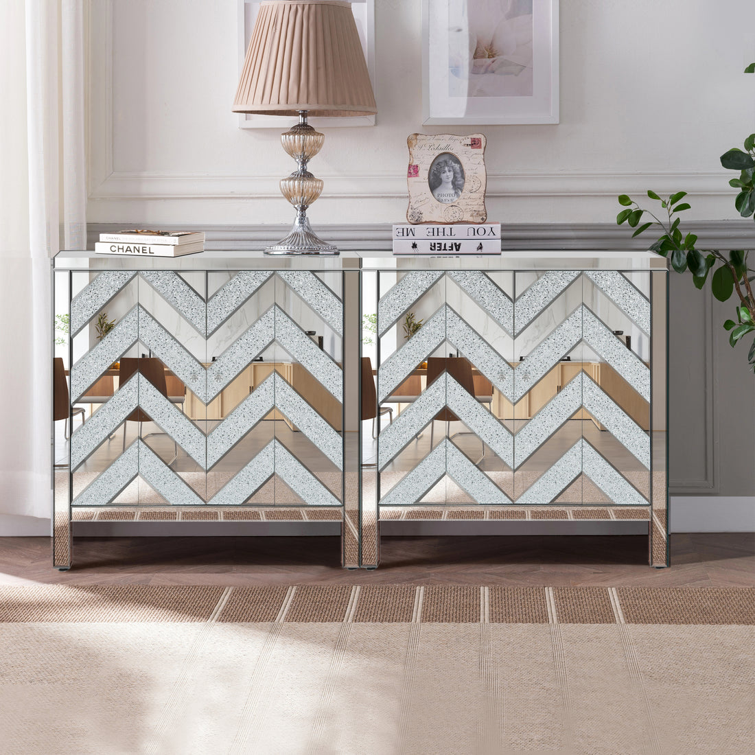 Storage Cabinet With Mirror Trim And M Shape Design Spliced Combination For Living Room, Dining Room, Entryway, Kitchen Silver Grey Mdf Glass