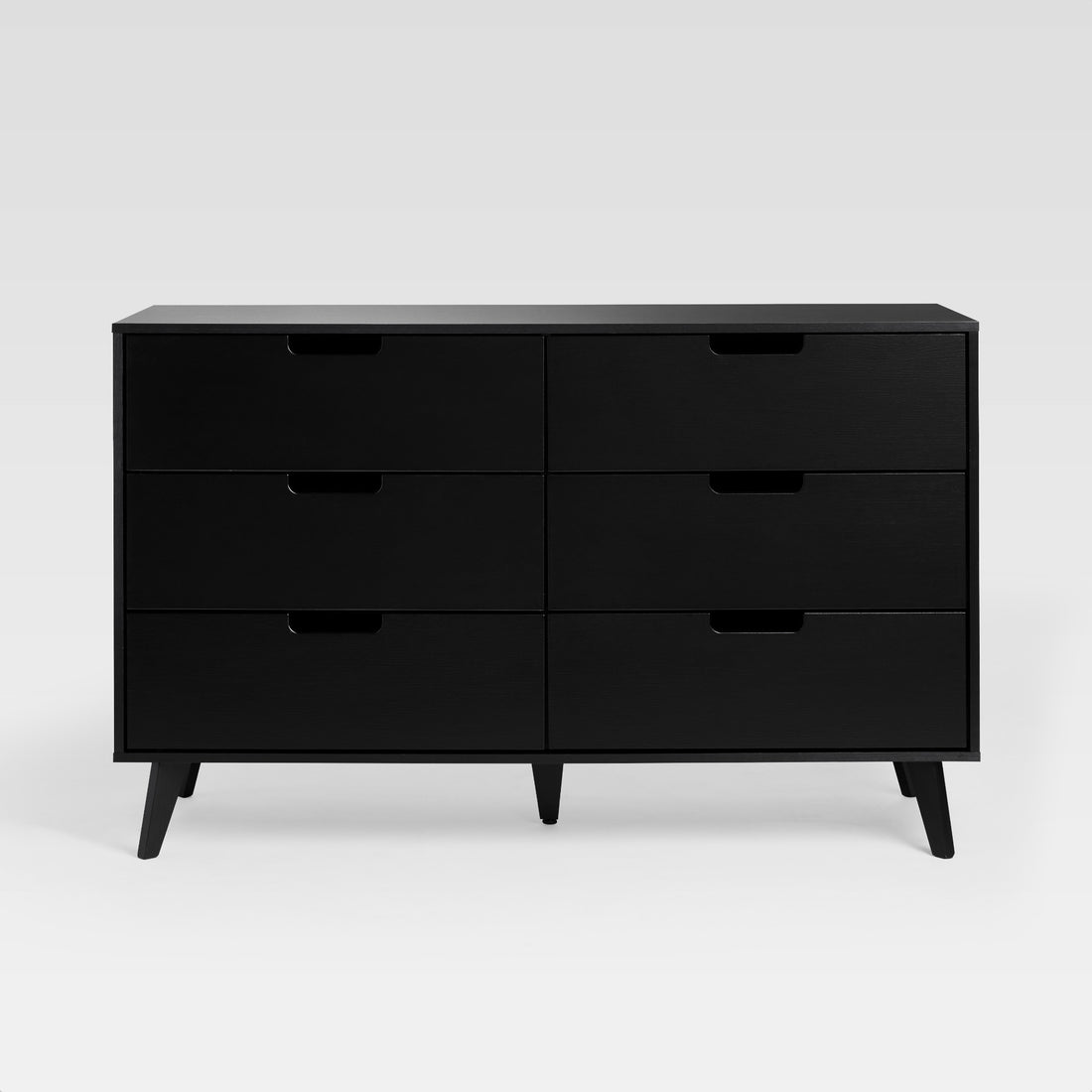 Mid Century Hans 6 Drawer Dresser With Cut Out Handles, Black Black Mdf Mdf