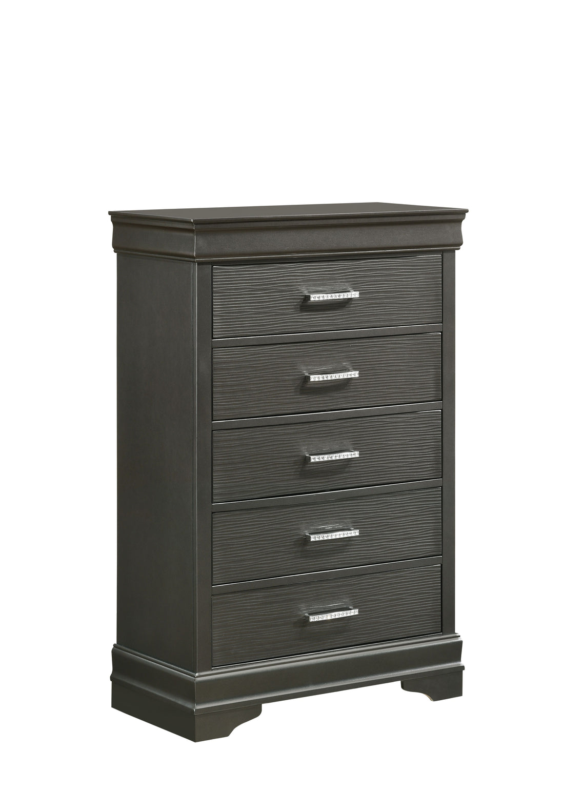 Name: Modern Brooklyn 5 Drawers Chest made with Wood in Gray Description: Upgrade your bedroom...