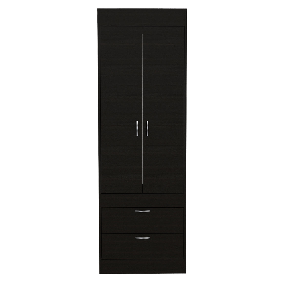 Lisboa Armoire, Rod, Double Door, Two Drawers, Metal Handles Black Particle Board Engineered Wood