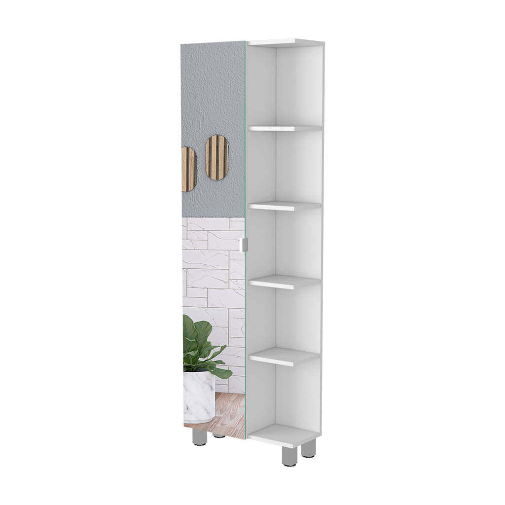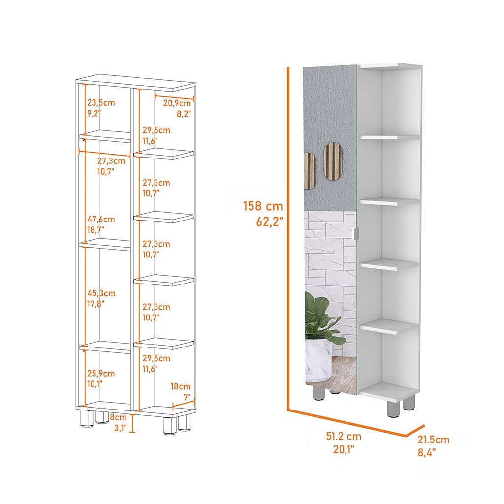Name: Los Angeles Linen Cabinet, Mirror, Five Shelves Characteristics: 62" High Bathroom Cabinet 58" High...