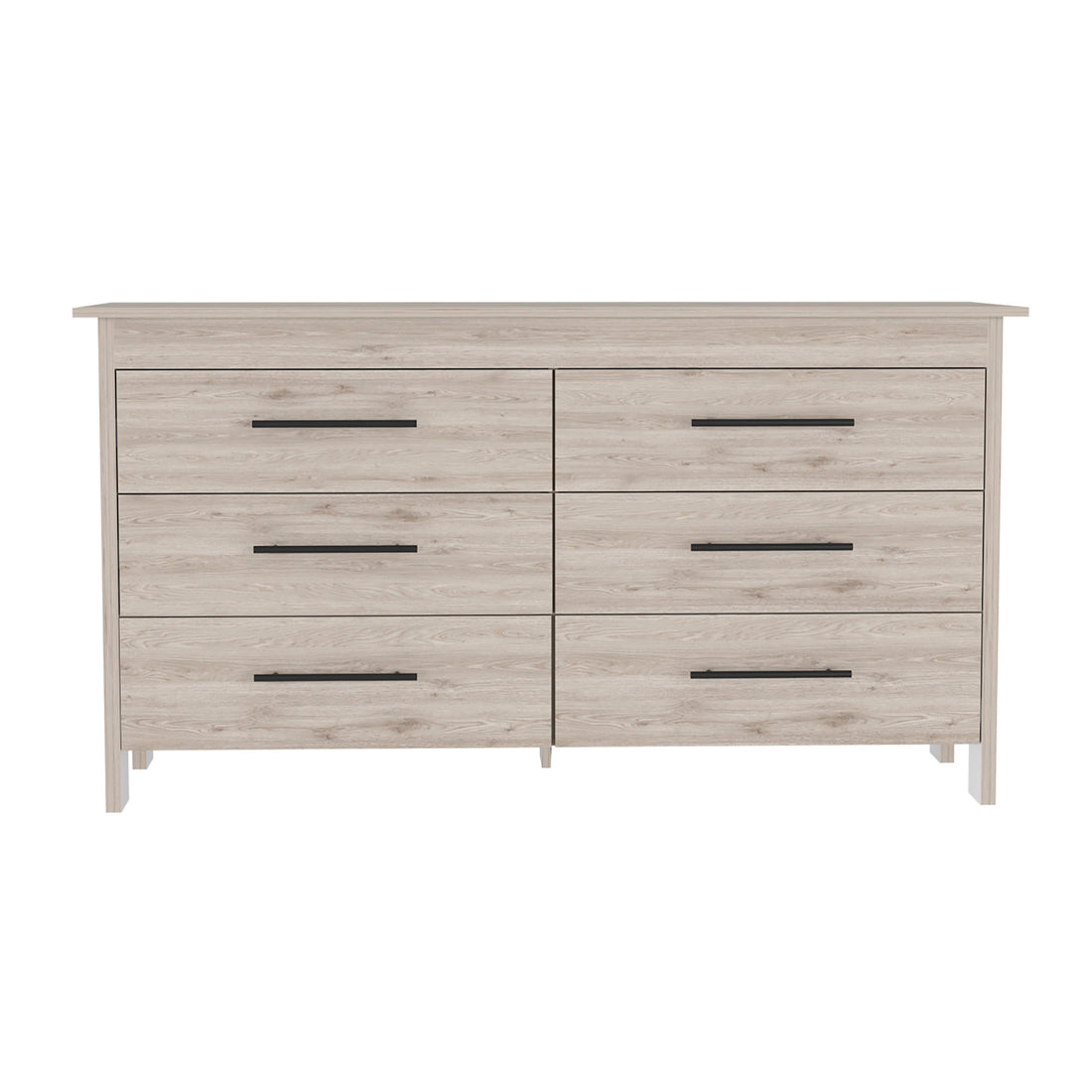 Hms 6 Drawer Double Dresser, Four Legs, Superior Top, Six Drawers Light Gray Gray Bedroom Modern Particle Board Particle Board