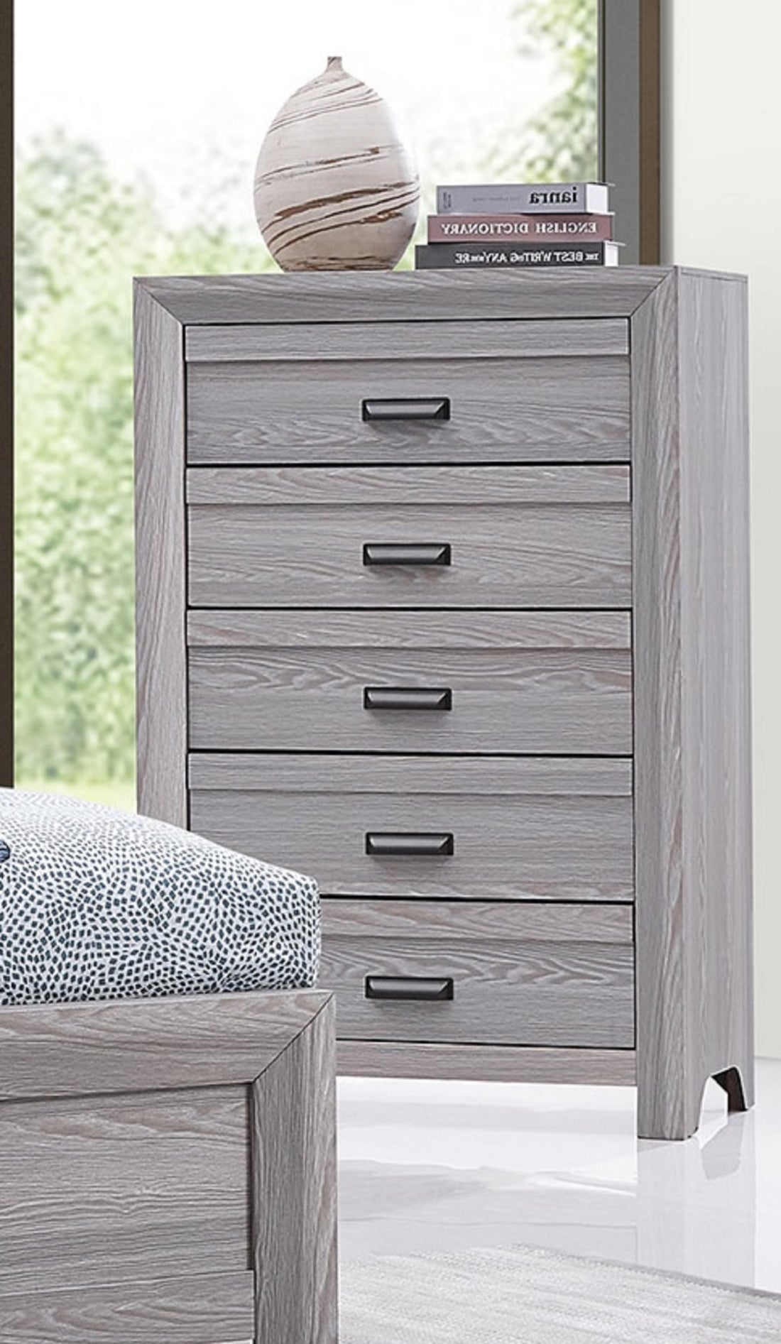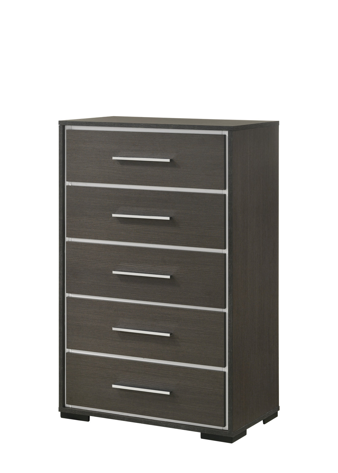Name: 1pc Contemporary 5-Drawer Chest with Chrome Accents Gray Rustic Finish Bedroom Wooden Furniture Description:...