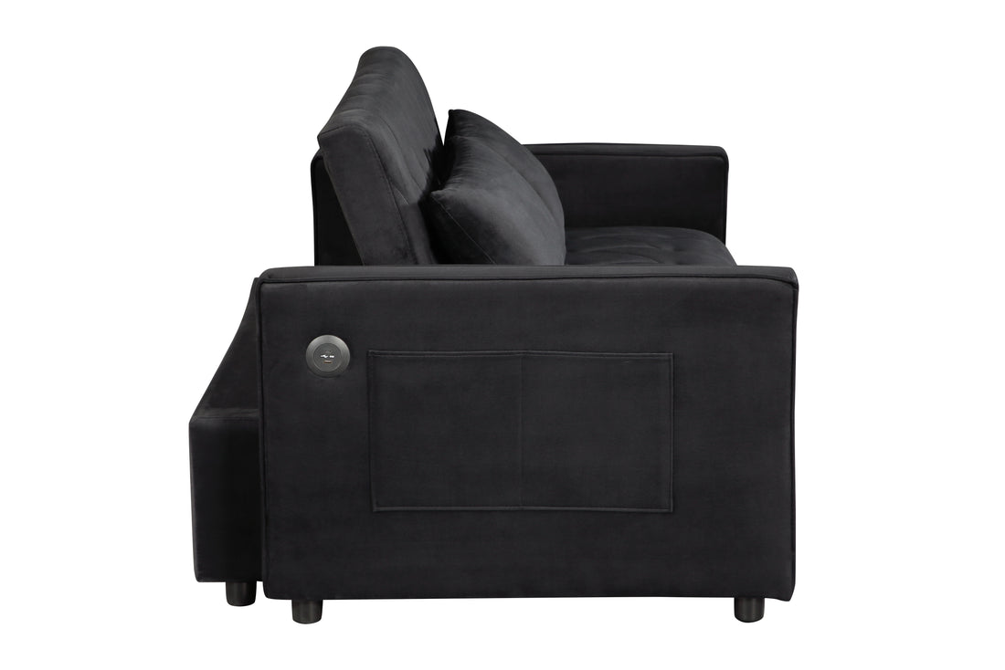 3 In 1 Sleeper Sofa Couch Bed Twin Black Velvet