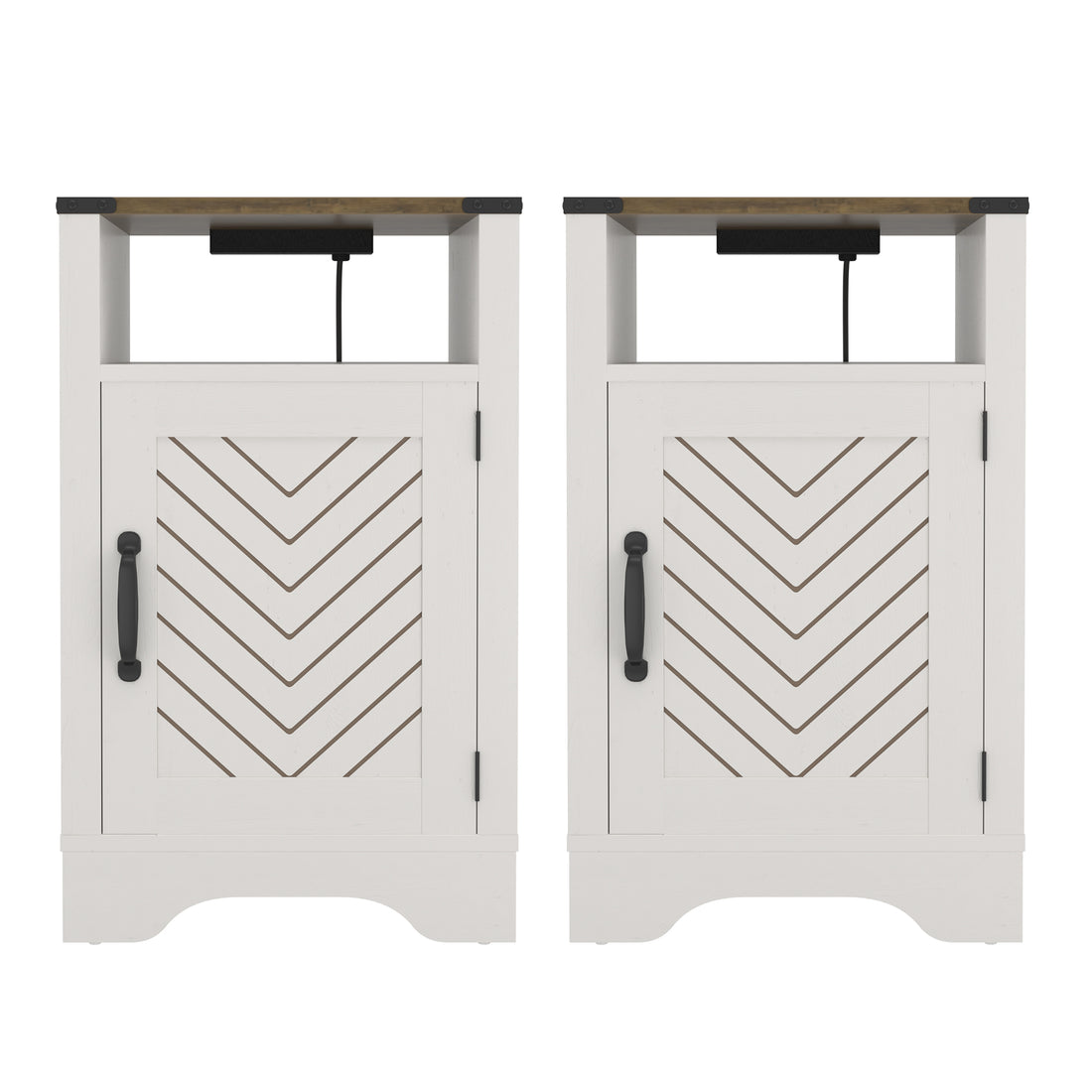 Farmhouse Nightstand Side Table, Wooden Rustic End Table, Tall Bedside Table With Electrical Outlets Charging Station 2 Sets White & Oak White Oak Engineered Wood