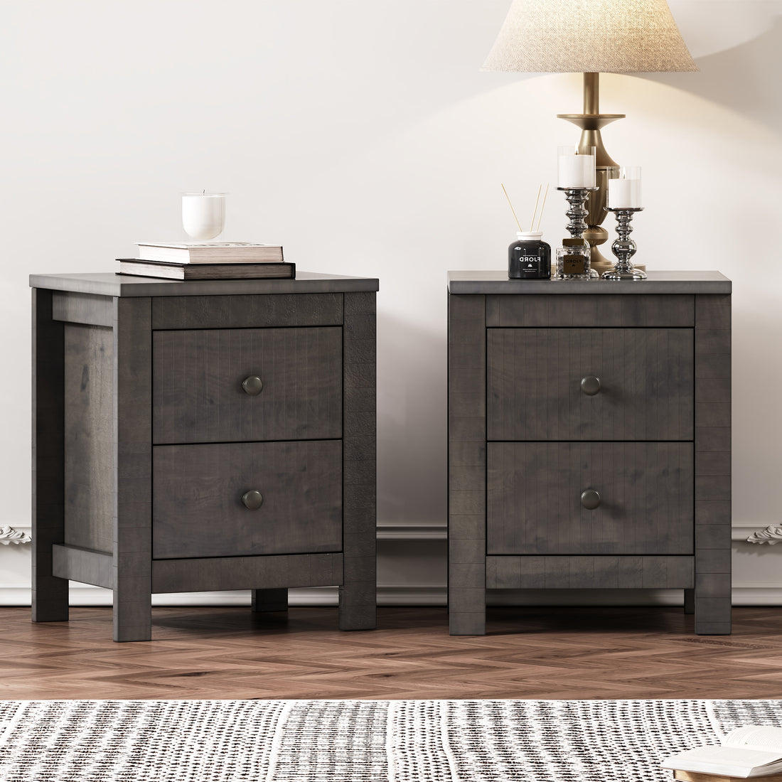 Farmhouse Wooden Nightstand Set Of 2 With Retro Design, Wood Side Table With Storage Cabinet For Bedroom, Antique Gray Antique Gray 2 Drawers Particle Board