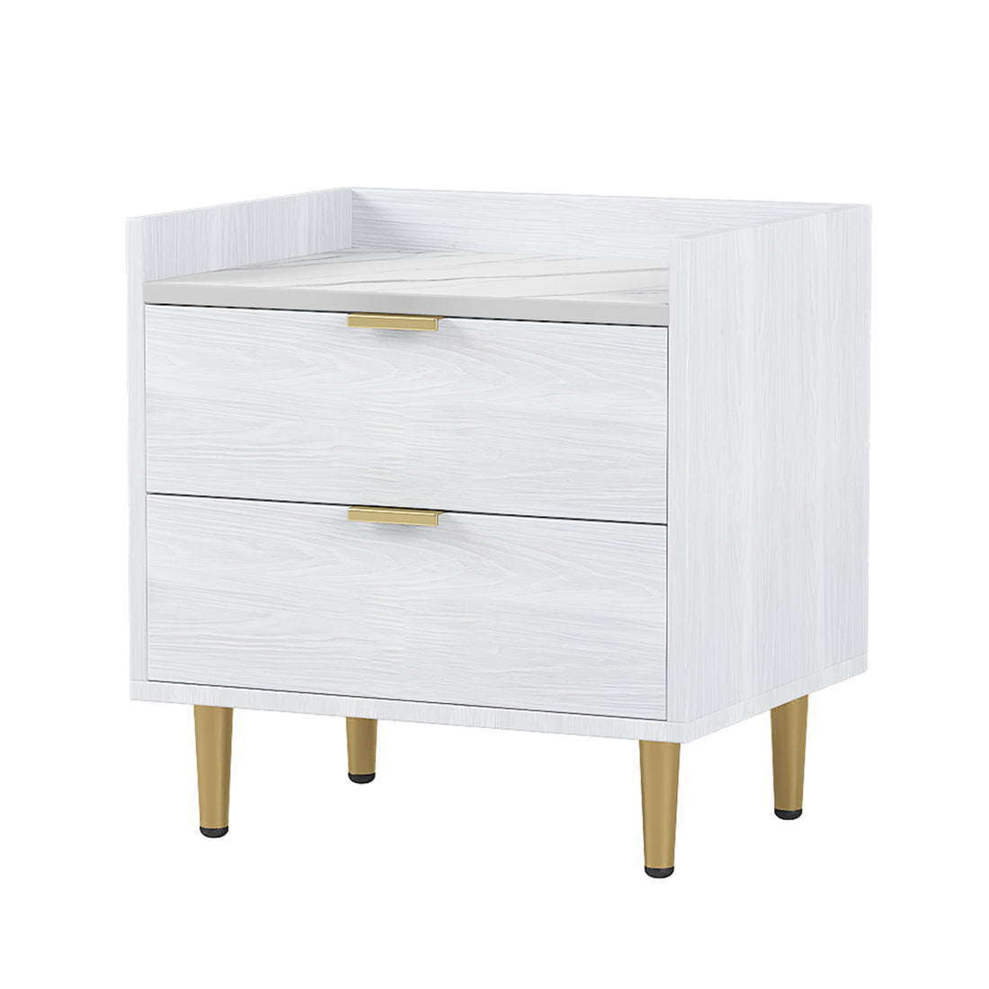 Wooden Nightstand With 2 Drawers And Marbling Worktop, Mordern Wood Bedside Table With Metal Legs&Handles,White White Mdf Metal