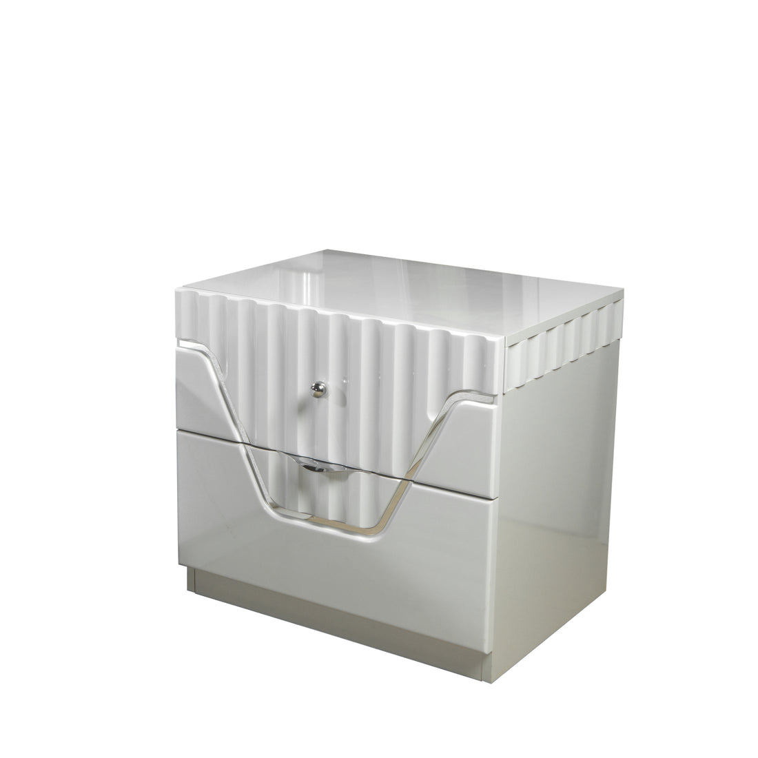 Name: White 2-drawer Nightstand with Hidden Jewelry Tray Description: Romance Copy This glitzy nightstand has...