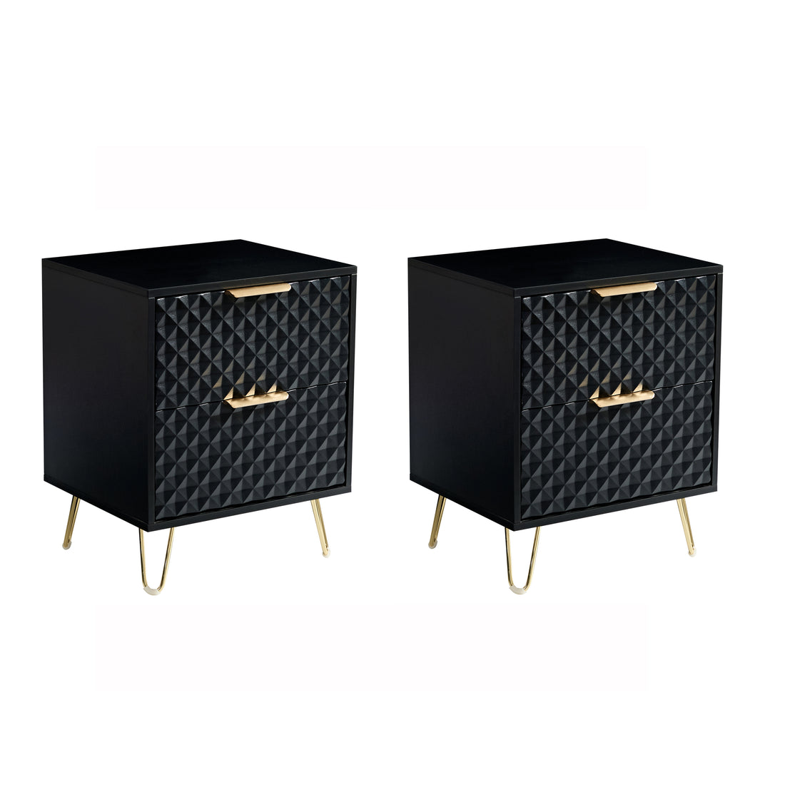 Black Nightstand Set Of 2, End Side Table Double, Bedside Table With 2 Drawers, Dual Night Stand Metal Legs For Bedroom Living Room Black 2 Drawers Bedroom American Design,American Traditional Particle Board Particle Board