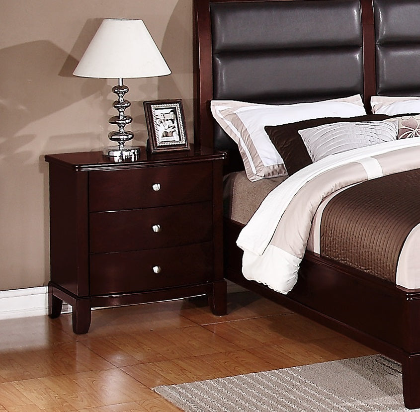 Brown Finish 3 Drawers Nightstand Bedroom Furniture 1Pc Nightstand Mdf Birch Veneer Brown Brown 3 Drawers Bedroom Bedside Cabinet Contemporary,Modern Poplar Drawers Cherry Solid Wood
