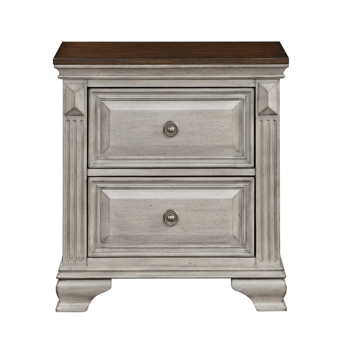 Name: Leonora Nightstand, Vintage Platinum 22143 Description: Romance Outfited with two dovetail drawers, this piece...