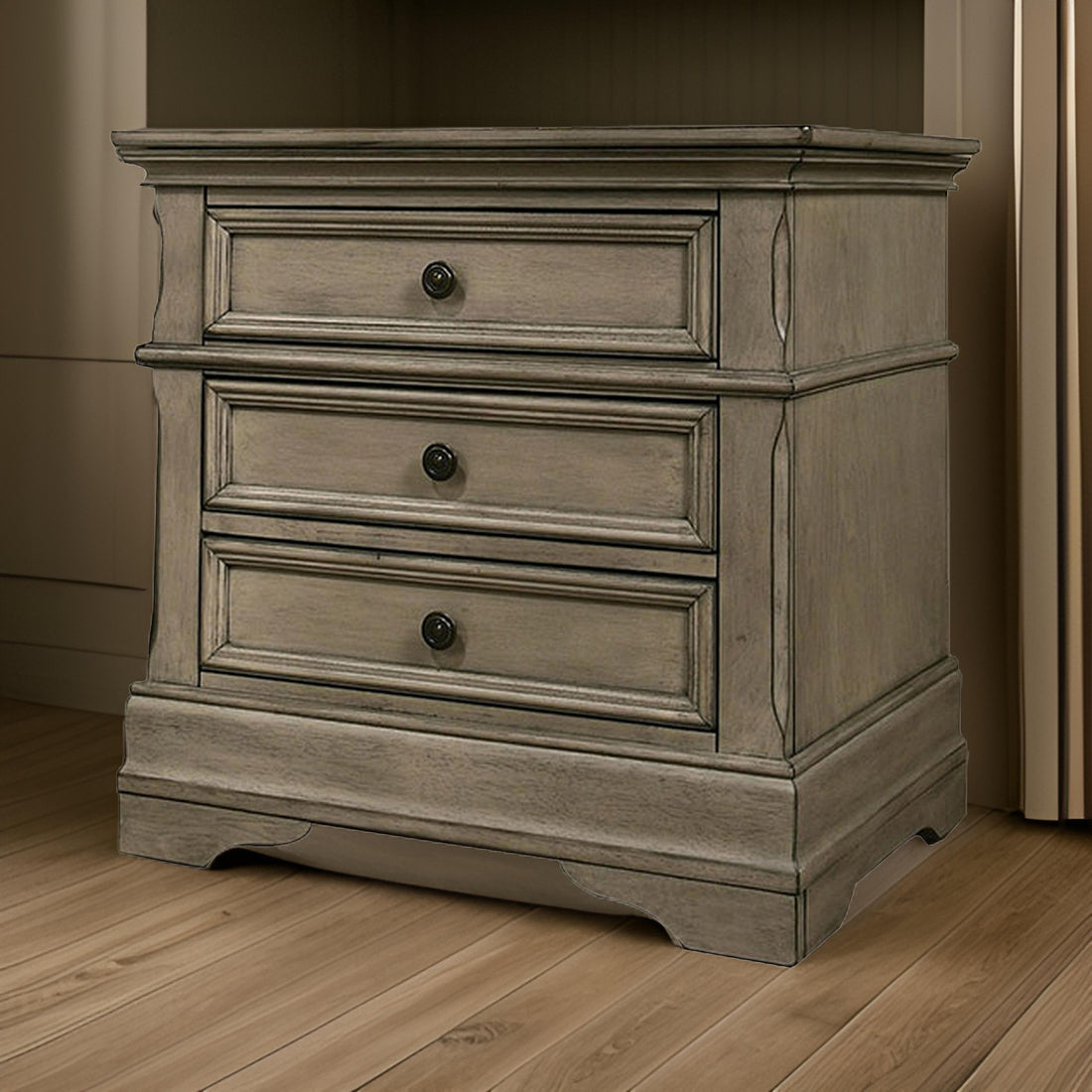 Name: Classic Solid Wood 3-Drawer Nightstand Grey Characteristics: Made with solid pine wood responsibly sourced...