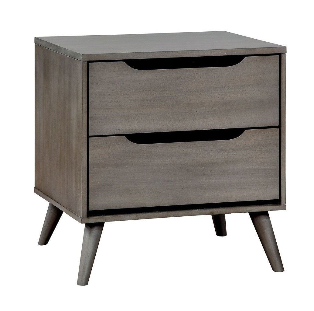 Name: Mid-Century Modern Gray Color 1pc Nightstand Bedroom Furniture Solid wood Round Tapered Legs 2-Drawers...