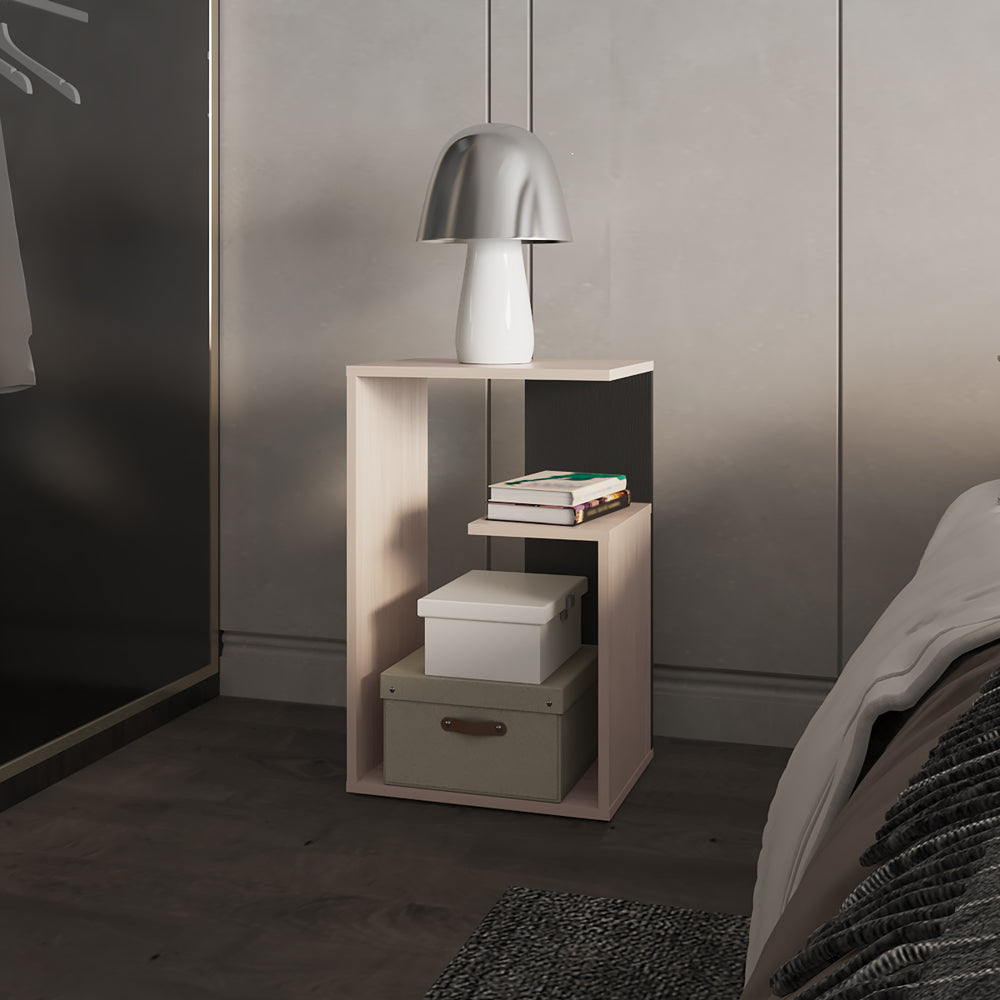 Everet 25" High 3 Tier Open Shelves Night Stand Beige Black,Multicolor Bedroom Open Storage Modern Shelf Particle Board
