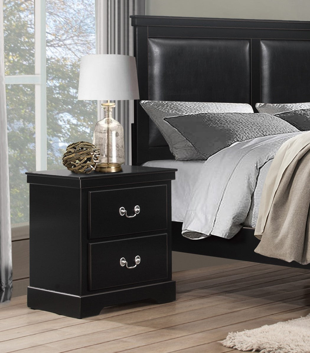 Name: 1pc Classic Traditional 2 Drawers Nightstand Black Finish Bedroom Furniture Wooden Bedside Table Cabinet...