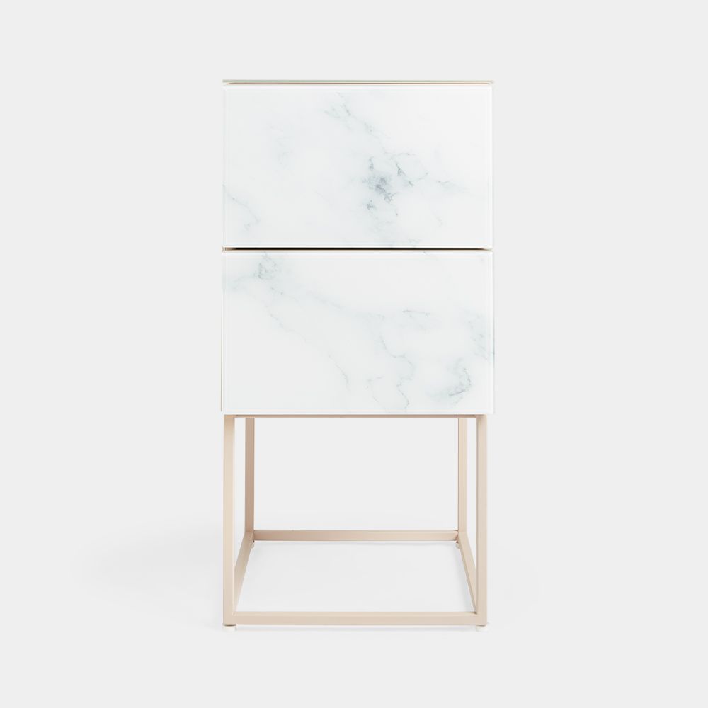 Tempered Glass Marble Stone Double Drawer Bedside Table For Bedroom, Living Room Pink White Mdf Glass