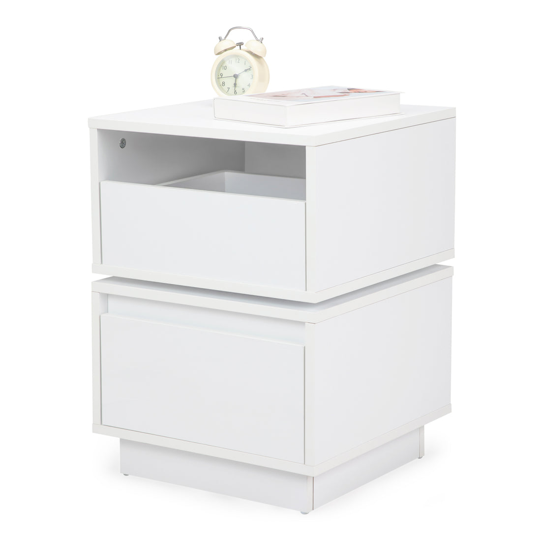 Rotatable Nightstand End Table, Bedside Table With 2 Drawers, 2 Drawer Dresser For Bedroom, Closet, Entryway, College Dorm, White White 2 Drawers Bedroom Bedside Cabinet Artsy,Classic Space Saving Particle Board