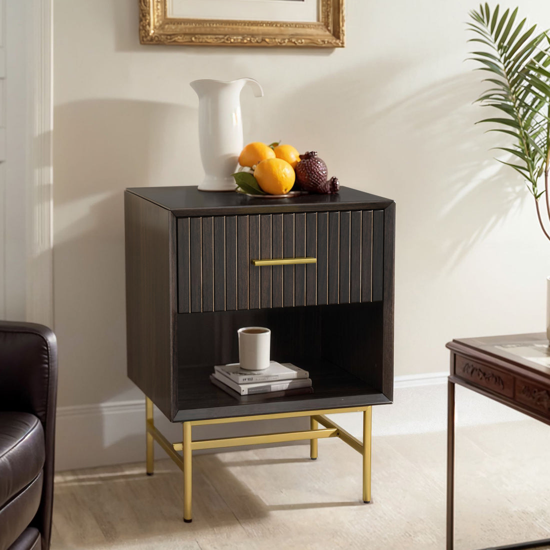 Name: Nightstand, Modern Grooved Stripes Bed Side Table with a Drawer,Wood End Table with Golden...