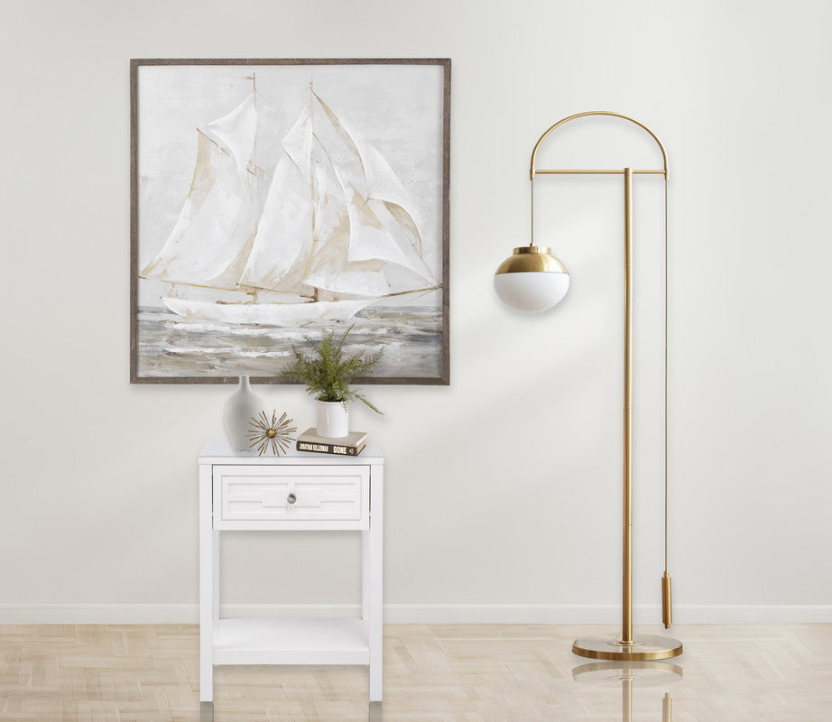 Name: Dylan 23" White Wooden End Side Table Nightstand with Glass Top and Drawer Characteristics:...