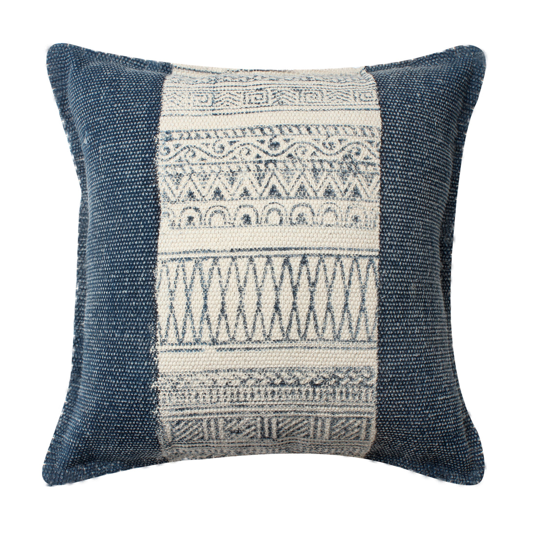 18 X 18 Square Handwoven Accent Throw Pillow, Polycotton Dhurrie, Kilim Pattern, White, Blue Blue Cotton