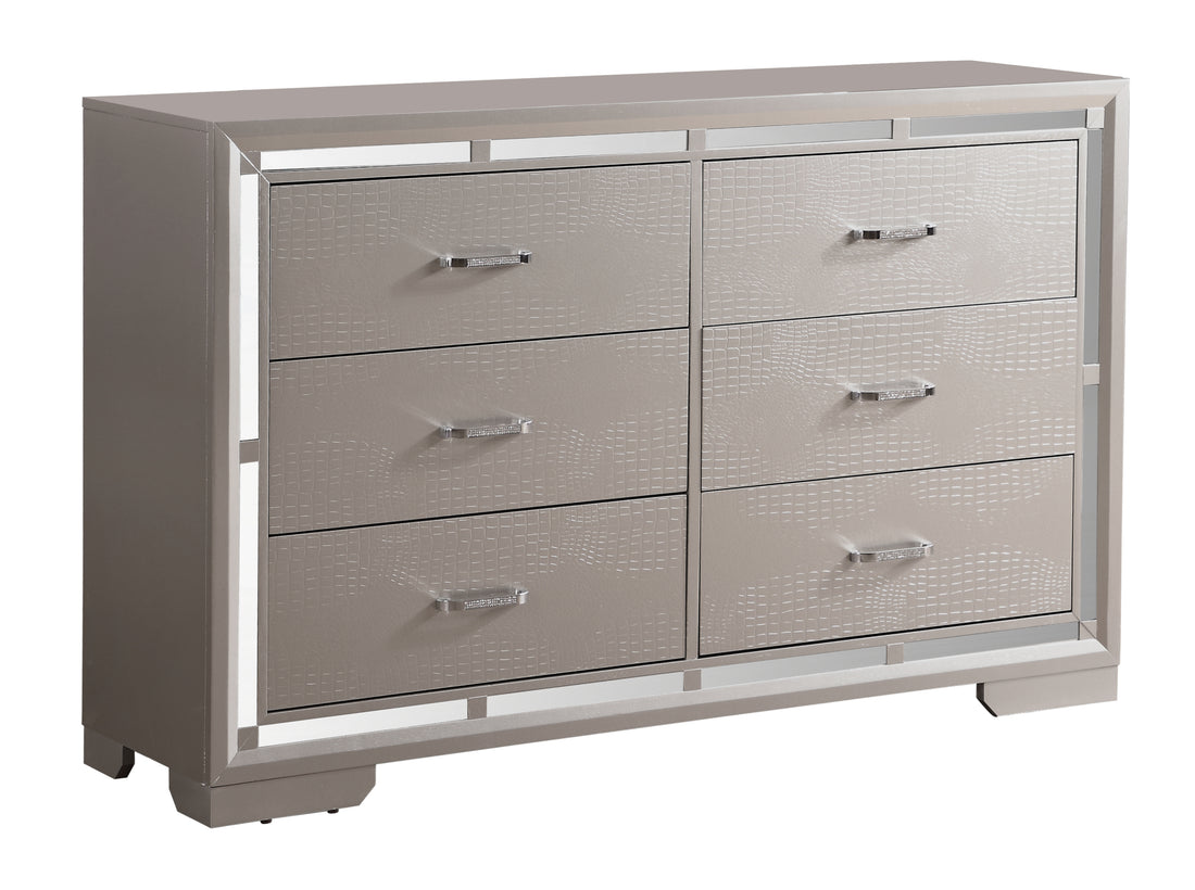 Name: Alana G6800-d Dresser , Silver Champagne Characteristics: Jeweled Chrome Hardware, Mirror Accents and Croc...