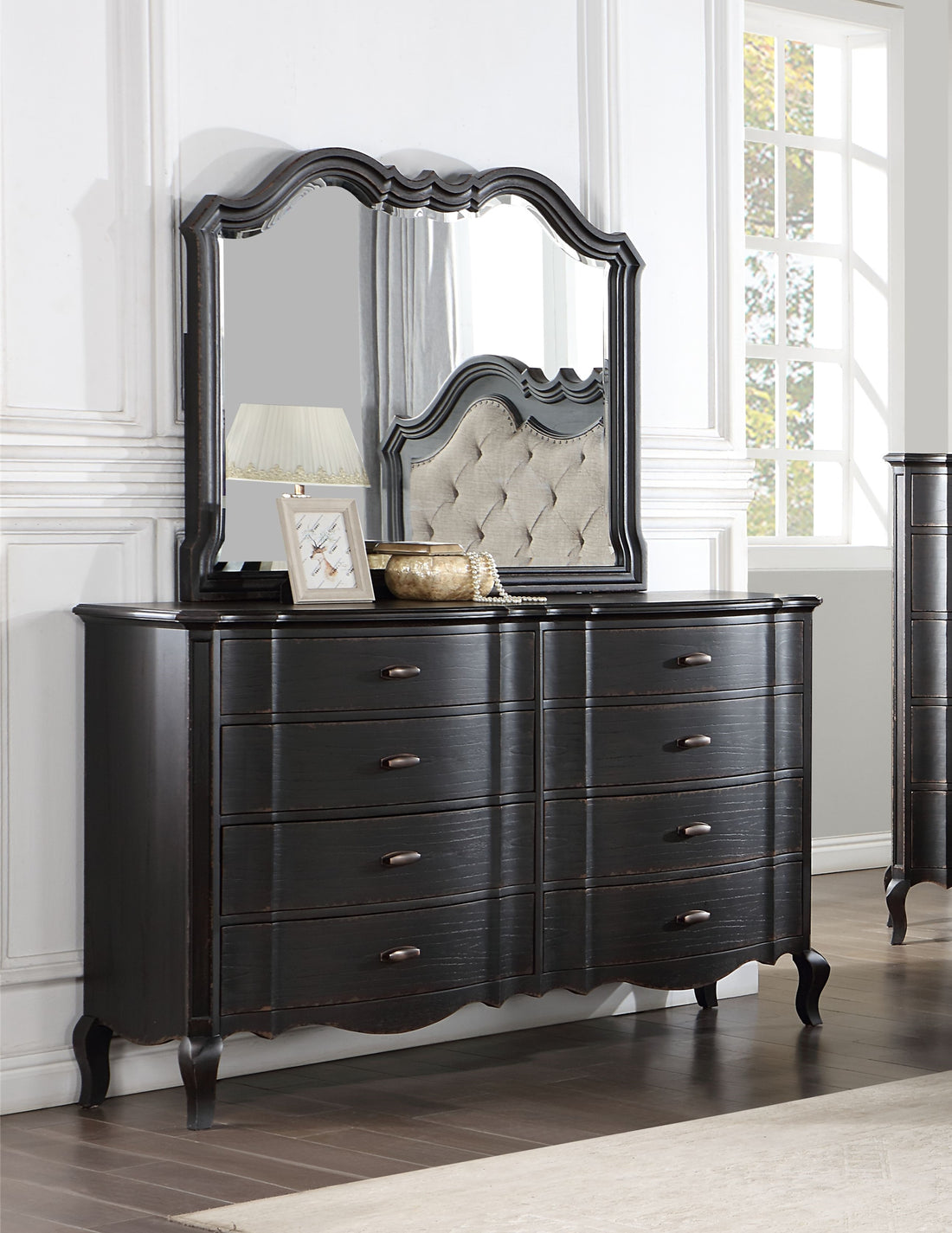 Elegant Traditional Black Dresser Black 5 Drawers & Above Partice Board Mdf Pine Wood