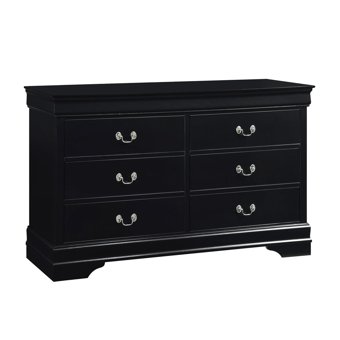 Traditional Design Black Finish Dresser Of 6X Drawers 1Pc Classic Louis Phillippe Style Bedroom Furniture Black 5 Drawers & Above Bedroom Traditional Wood