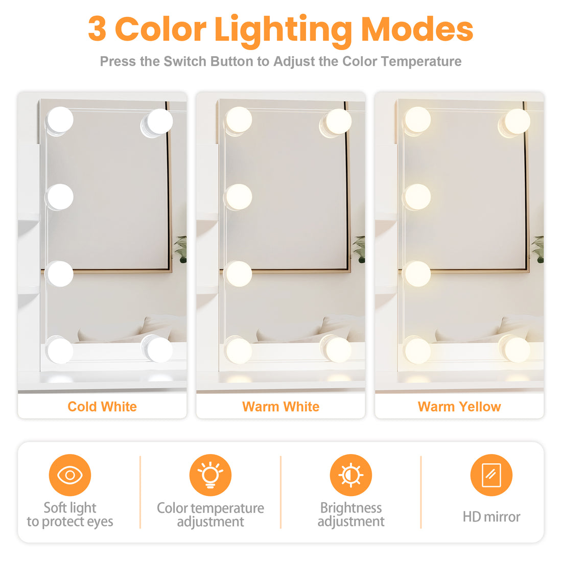 Name: Large White Vanity Tables with Mirror and Light Characteristics: 3-COLOR Adjustable Lighting- Featuring 12...