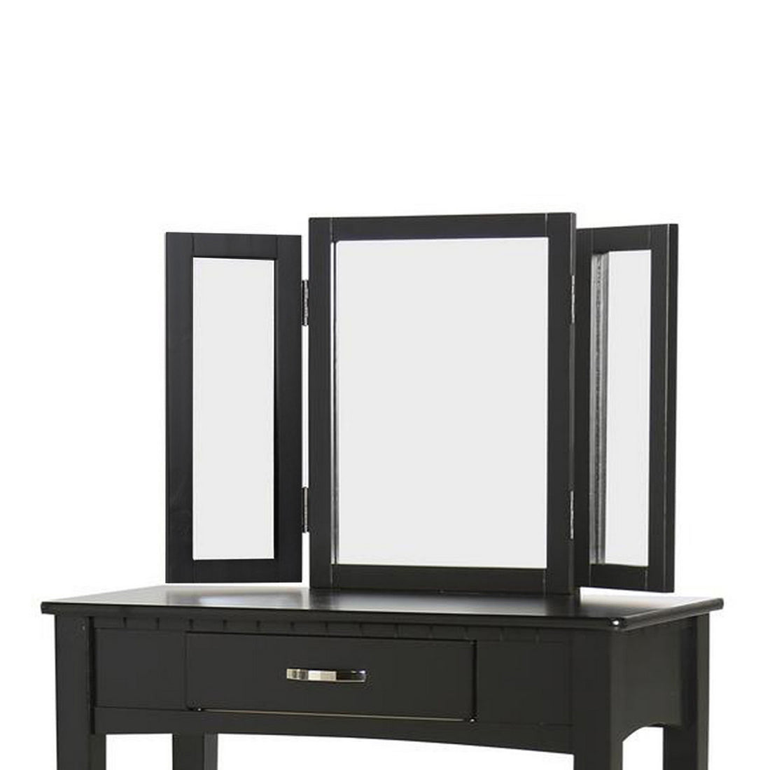 Name: Wooden Vanity Set with 3 Sided Mirror and Padded Stool, Black Characteristics: This vanity...