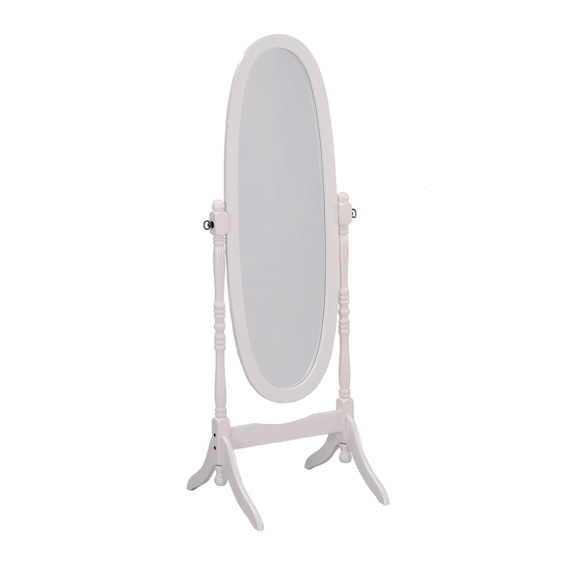 Name: 59.25" Tall Standing Wooden Floor Mirror with White finish, Oval Shape Characteristics: adjustable full-length...