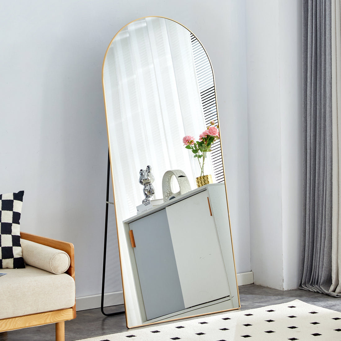 Dolonm 65X22 Inch Arch Full Length Mirror, Modern Design Standing Floor Mirror, Full Body Mirror For Living Room, Bedroom, Bathroom, Cloakroom, Hallway, Gold Aluminum Alloy Frame Golden Mirror
