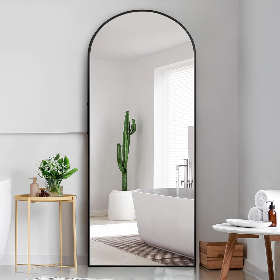 Dolonm 65X22 Inch Arch Full Length Mirror, Modern Design Standing Floor Mirror, Full Body Mirror For Living Room, Bedroom, Bathroom, Cloakroom, Hallway, Black Aluminum Alloy Frame Black Mirror