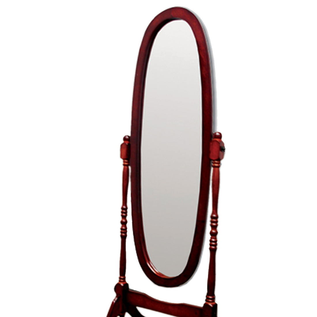 Name: 59.25" Tall Standing Wooden Floor Mirror with Cherry finish, Oval Shape Characteristics: Cherry finish...