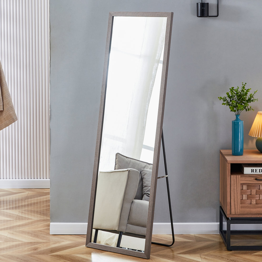 Third Generation Packaging Upgrade, Thickened Frame, Gray Wood Grain Solid Wood Frame Full Length Mirror, Dressing Mirror, Bedroom Entrance, Decorative Mirror, Floor Standing Mirror. 57.9 "* 18.1" Gray Solid Wood