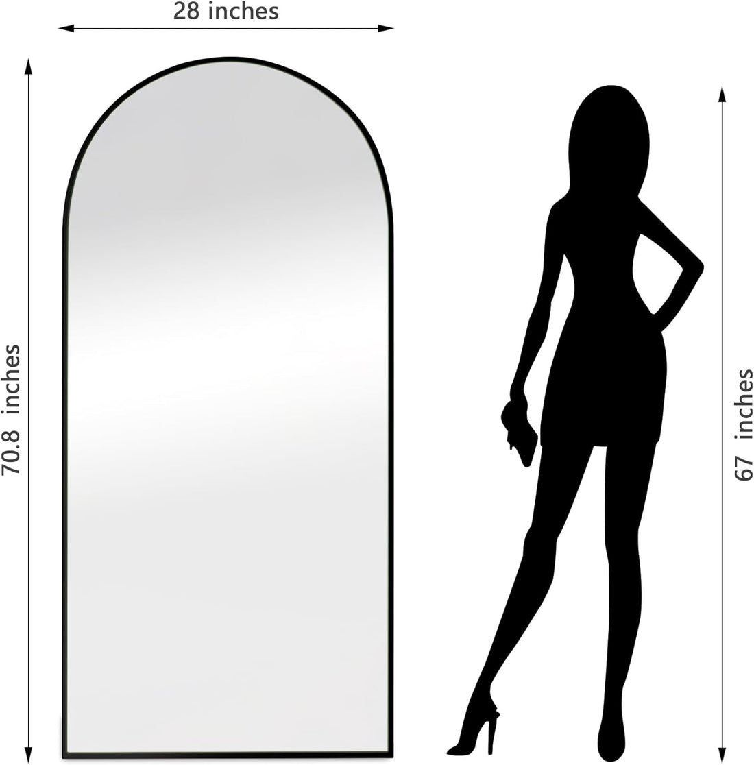 Dolonm 71X24 Inch Arch Full Length Mirror, Modern Design Standing Floor Mirror, Full Body Mirror For Living Room, Bedroom, Bathroom, Cloakroom, Hallway, Black Aluminum Alloy Frame Black Mirror