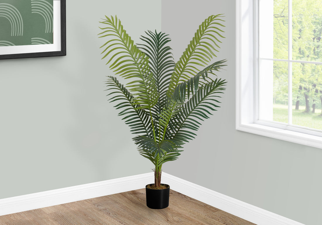 Artificial Plant, 47" Tall, Areca Palm Tree, Indoor, Faux, Fake, Floor, Greenery, Potted, Real Touch, Decorative, Green Leaves, Black Pot Green Plastic