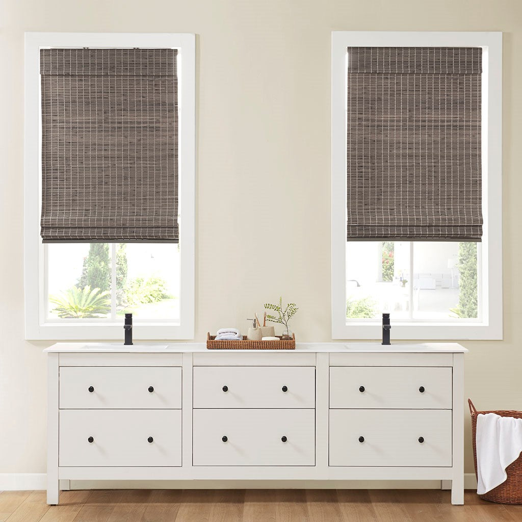 Bamboo Light Filtering Roman Shade 64"L Grey Ash Bamboo