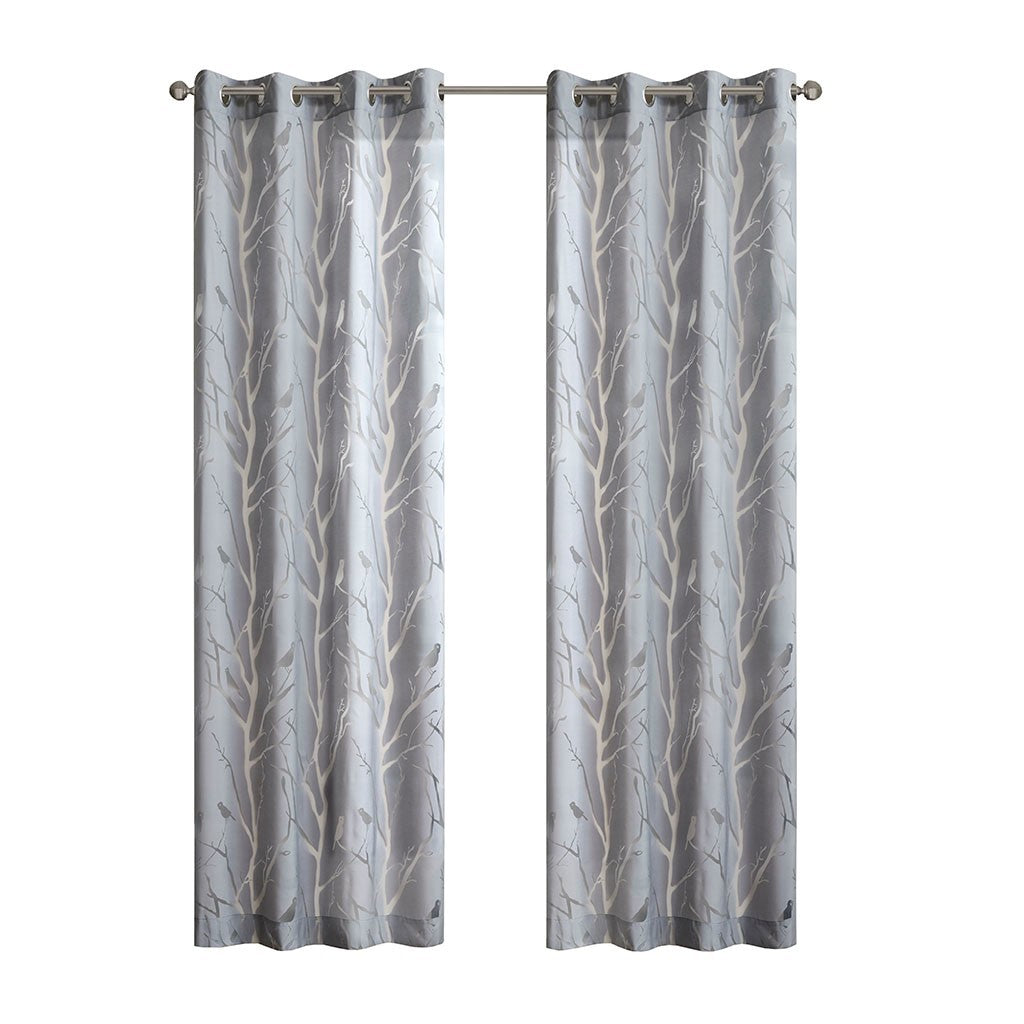 Grommet Top Sheer Bird On Branches Burnout Window Curtain Only 1 Pc Panel Grey Polyester