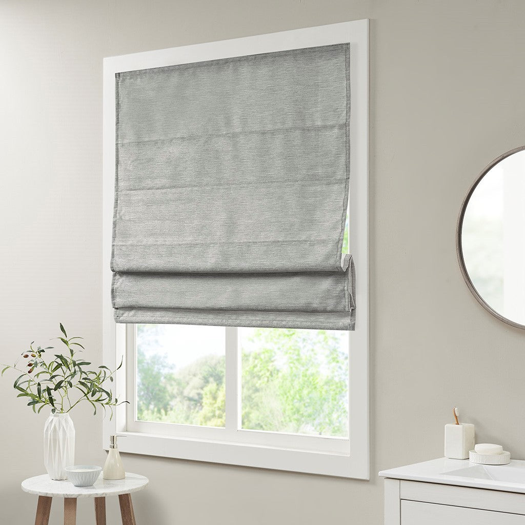 Basketweave Room Darkening Cordless Roman Shade Grey Polyester