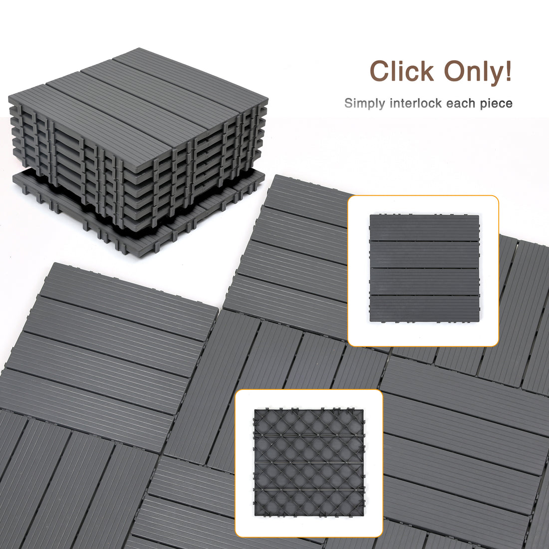 Plastic Interlocking Deck Tiles, 44 Pack Terrace Deck Tiles, 12 "X12" Square Waterproof Outdoor All Weather Use, Pool Balcony Backyard Terrace Deck Tiles,Grey Grey Polypropylene