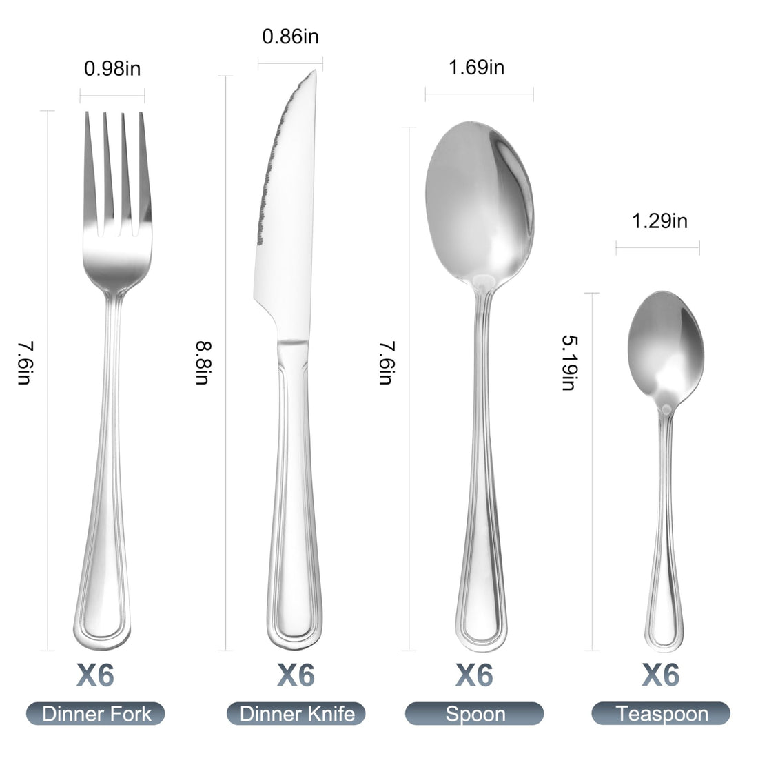 Name: 24-Piece Silverware Set, Stainless Steel Flatware Set Service for 6, Tableware Cutlery Set for...