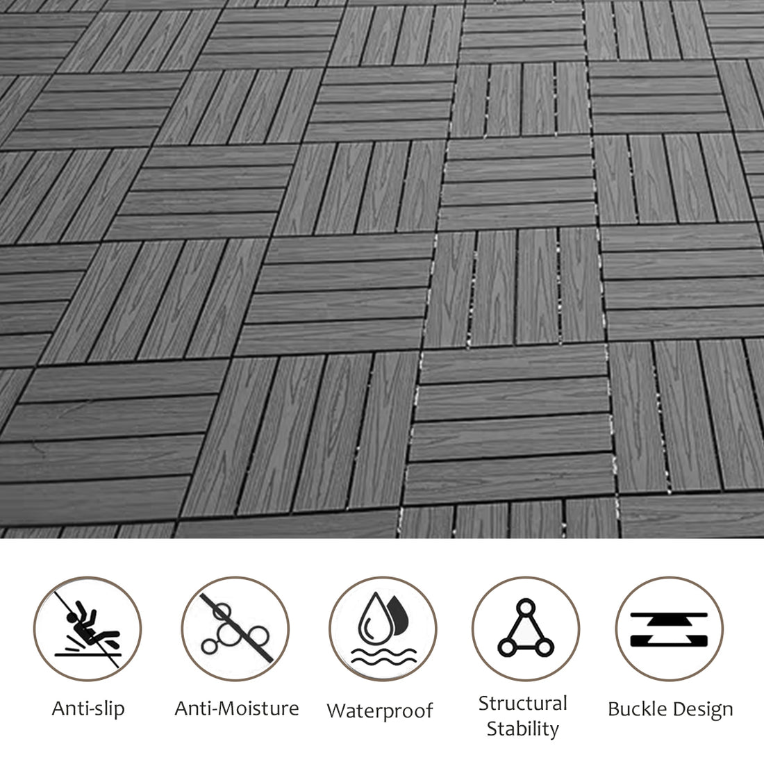 Wood Plastic Composite Deck Tiles Set Of 20Pcs, Composite Decking Resist Rust, Water, Weather, Easy To Diy & Maintain, Indoor&Outdoor,Ideal For Patios, Balconies, Rooftops, Decks, 12X12In Dark Grey Dark Grey Modern Plastic Wood Plastic