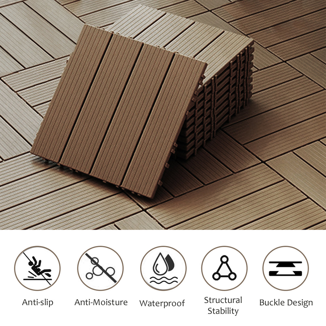 Plastic Interlocking Deck Tiles,44 Pack Patio Deck Tiles,12"X12" Square Waterproof Outdoor All Weather Use, Patio Decking Tiles For Poolside Balcony Backyard, Brown Brown Polypropylene