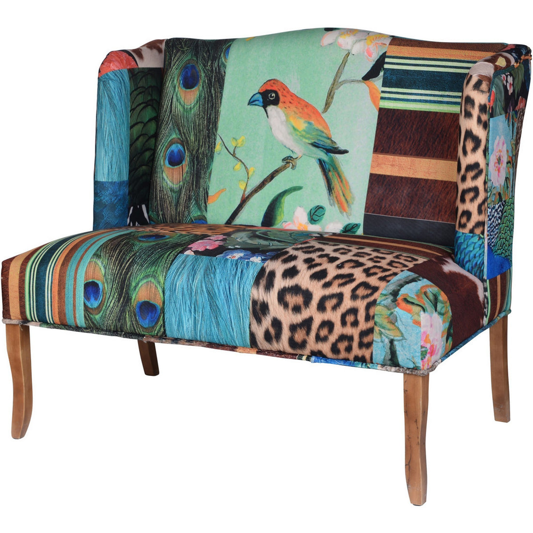 Vesta Bird Collage Print Settee, Multicolor Multicolor Solid Wood