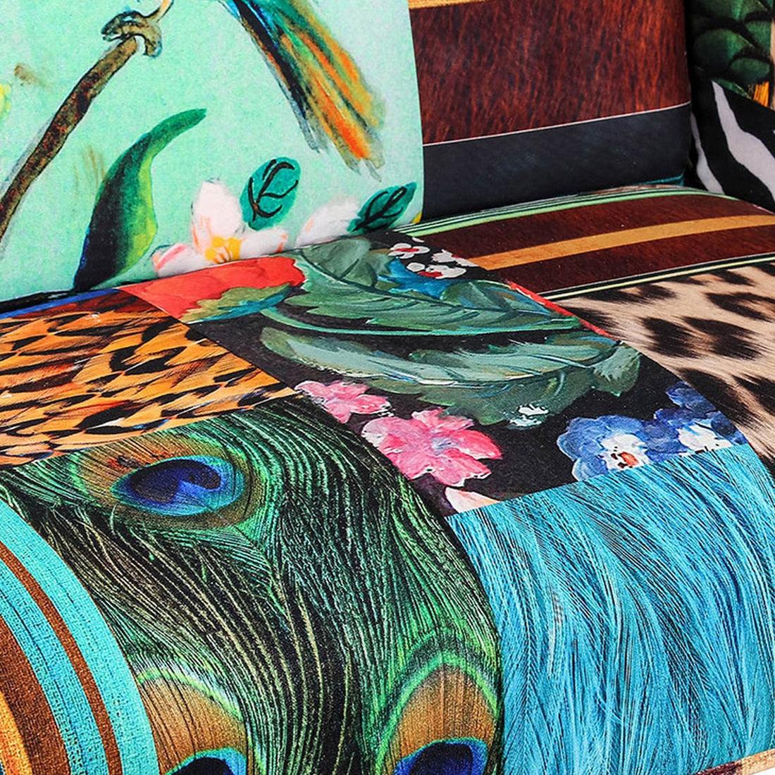 Name: Vesta Bird Collage Print Settee, Multicolor Characteristics: One two seater sofa Fabric upholstered and...