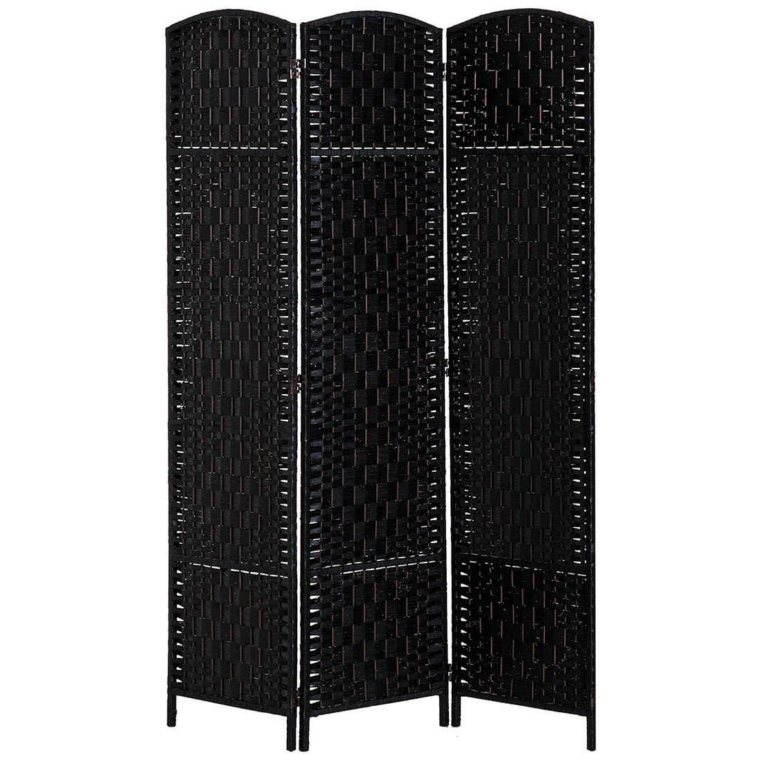 6' Tall Wicker Weave 3 Panel Room Divider Privacy Screen Black Black Wood
