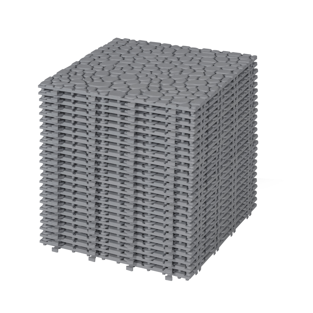 12 X 12 Inch Gray Interlocking Deck Tiles Plastic Waterproof Outdoor All Weather Anti Slip Bathroom Shower Balcony Porch Strong Weight Capacity Upto 440 Lbs, Pebble Stone Pattern Pack Of 24 Grey Bathroom American Design,American Traditional Plastic