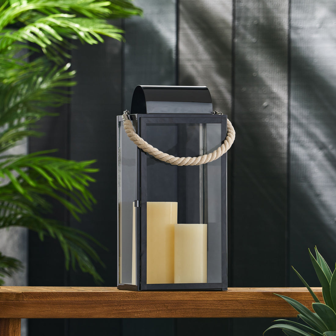 Larry 19"H Stainless Steel Lantern Black Stainless Steel